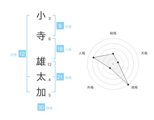 小寺 雄太加さんを姓名の画数から五運を鑑定