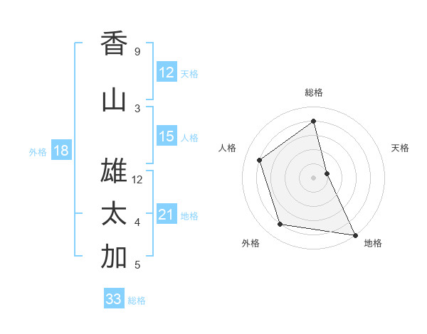 香山 雄太加さんを姓名の画数から五運を鑑定
