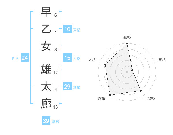 早乙女 雄太廊さんを姓名の画数から五運を鑑定