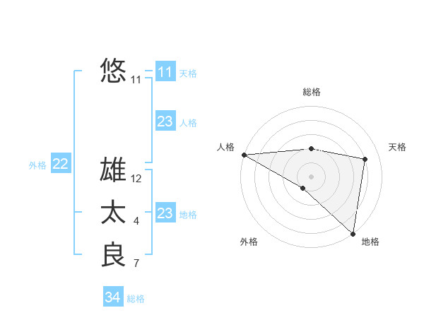 悠 雄太良さんを姓名の画数から五運を鑑定