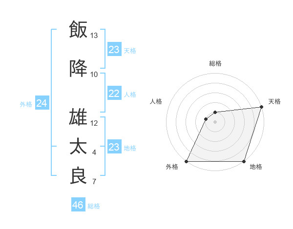 飯降 雄太良さんを姓名の画数から五運を鑑定