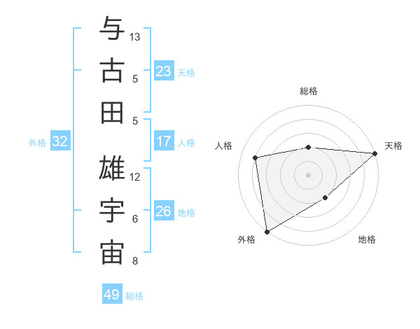 与古田 雄宇宙さんを姓名の画数から五運を鑑定