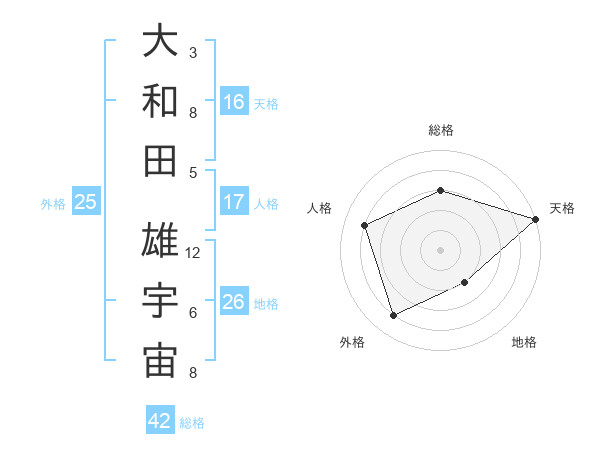 大和田 雄宇宙さんの天格は16画の5点!