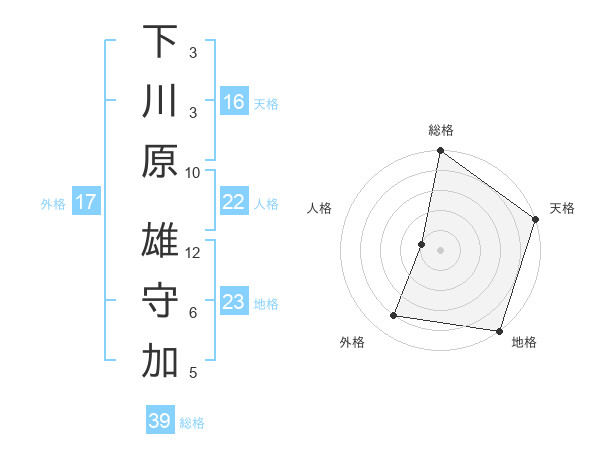 下川原 雄守加さんを姓名の画数から五運を鑑定