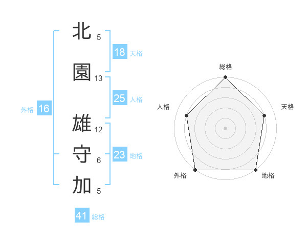 北園 雄守加さんを姓名の画数から五運を鑑定