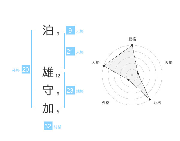 泊 雄守加さんを姓名の画数から五運を鑑定