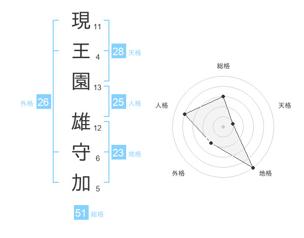現王園 雄守加さんを姓名の画数から五運を鑑定