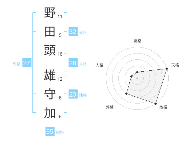 野田頭 雄守加さんの天格は32画の5点!