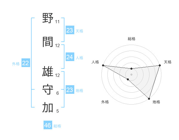 野間 雄守加さんを姓名の画数から五運を鑑定