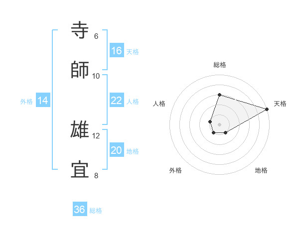 寺師 雄宜さんの天格は16画の5点!