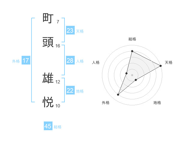町頭 雄悦さんの総格は45画の4点!