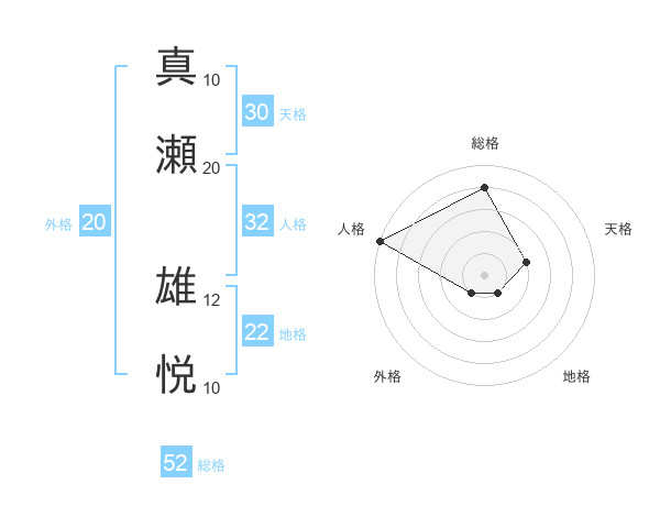真瀬 雄悦さんの総格は52画の4点!