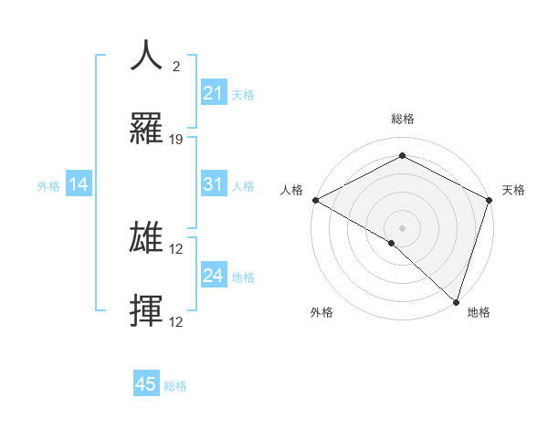 人羅 雄揮さんの総格は45画の4点!