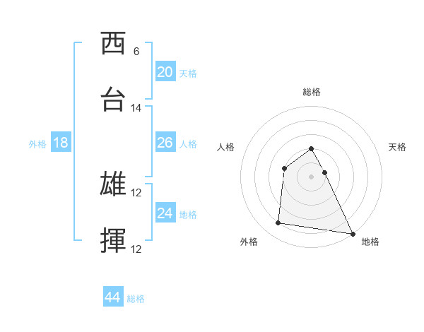 西台 雄揮さんの総格は44画の2点!