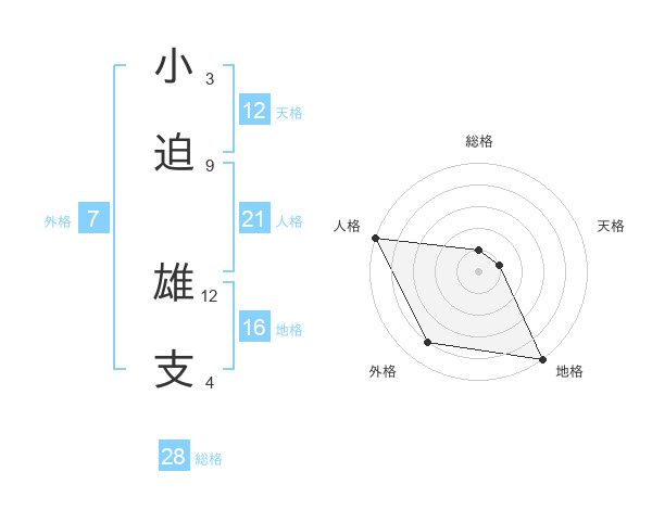 小迫 雄支さんの総格は28画の1点!