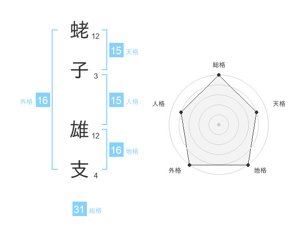 蛯子 雄支さんの総格は31画の5点!