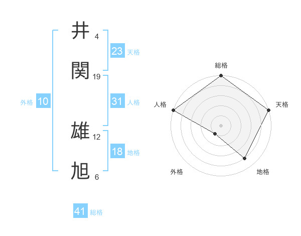 井関 雄旭さんの総格は41画の5点!