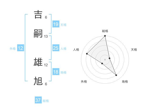 吉嗣 雄旭さんの総格は37画の5点!
