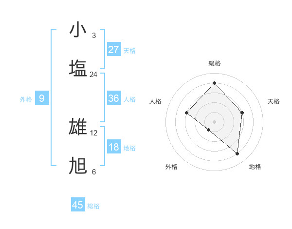 小塩 雄旭さんを姓名の画数から五運を鑑定