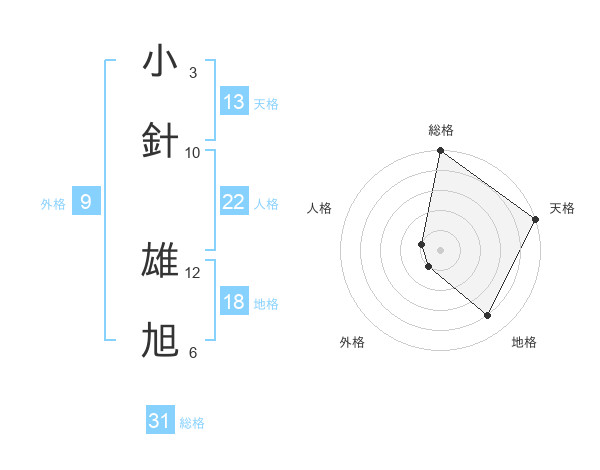 小針 雄旭さんの総格は31画の5点!
