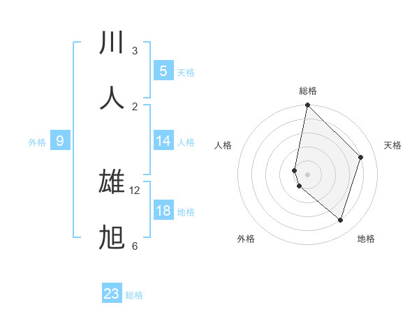 川人 雄旭さんの総格は23画の5点!