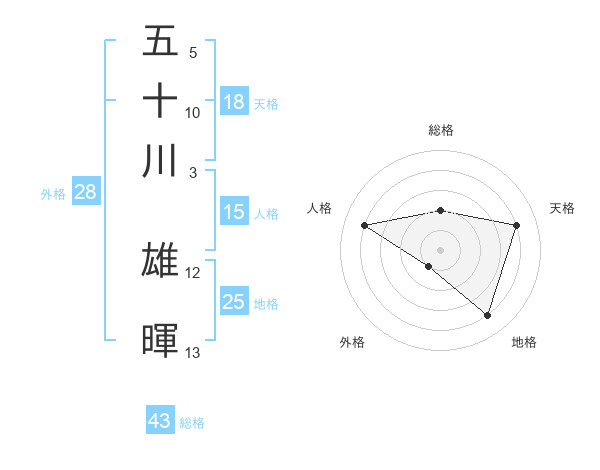 五十川 雄暉さんを姓名の画数から五運を鑑定