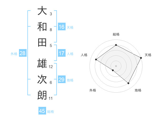 大和田 雄次朗さんを姓名の画数から五運を鑑定