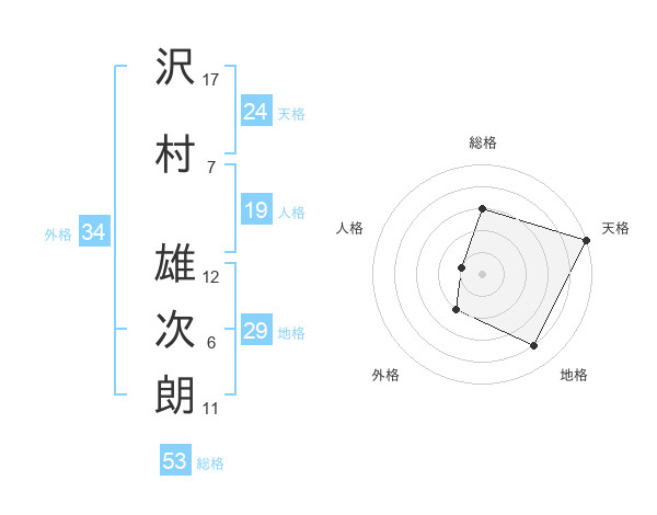 沢村 雄次朗さんを姓名の画数から五運を鑑定