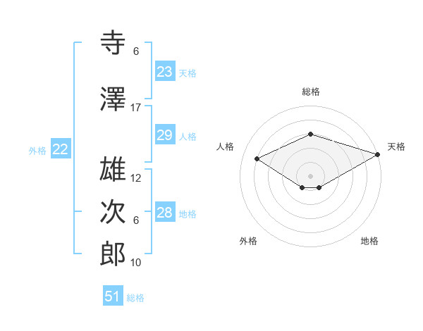 寺澤 雄次郎さんの総格は51画の3点