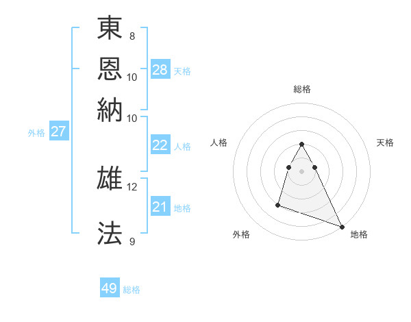 東恩納 雄法さんを姓名の画数から五運を鑑定