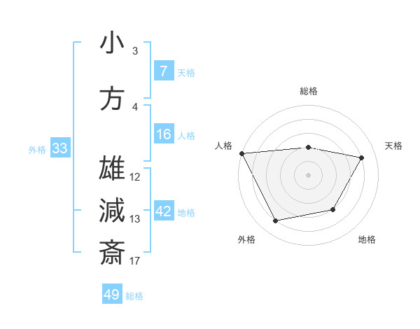 小方 雄減斎さんを姓名の画数から五運を鑑定