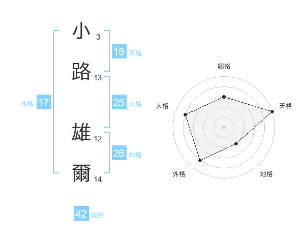 小路 雄爾さんを姓名の画数から五運を鑑定