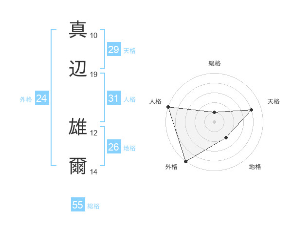 真辺 雄爾さんを姓名の画数から五運を鑑定