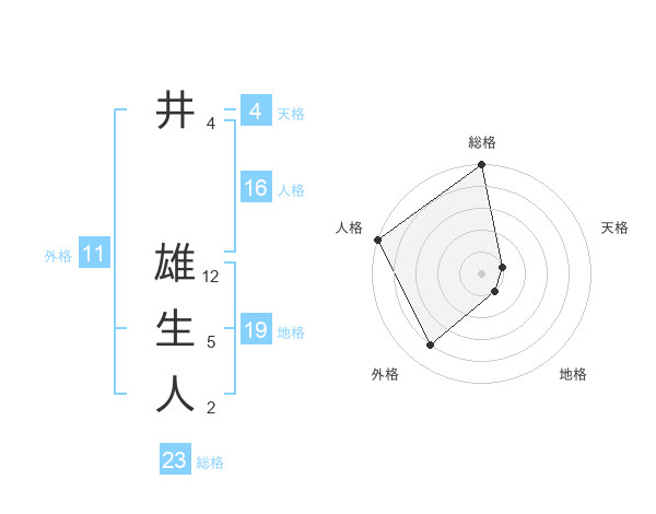 井 雄生人さんの総格は23画の5点!