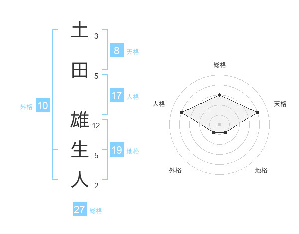 土田 雄生人さんの総格は27画の3点!