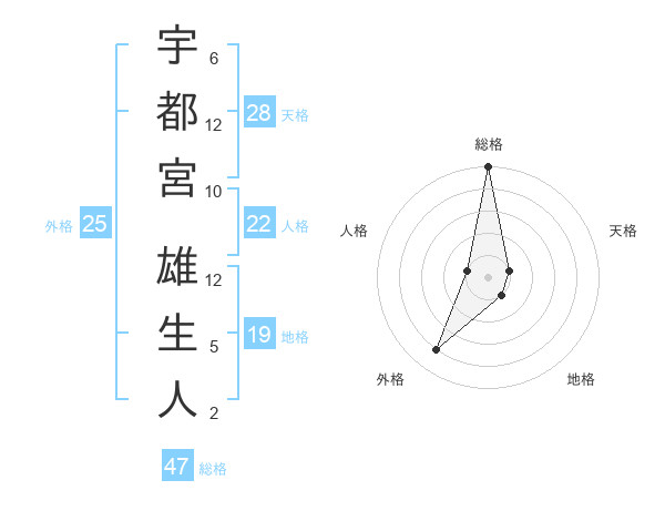 宇都宮 雄生人さんの総格は47画の5点!