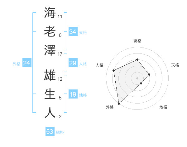海老澤 雄生人さんの外格は24画の5点!