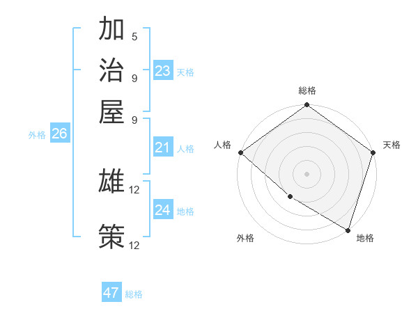 加治屋 雄策さんの総格は47画の5点!