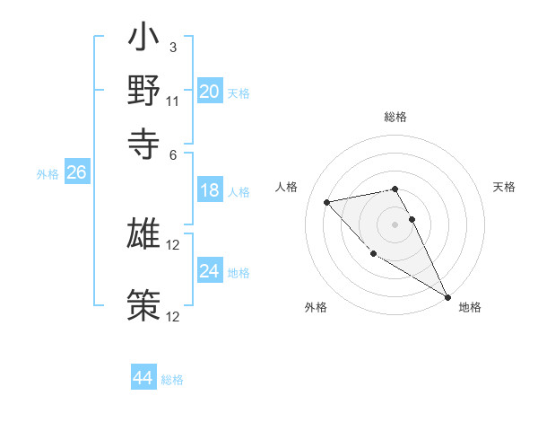 小野寺 雄策さんの総格は44画の2点!