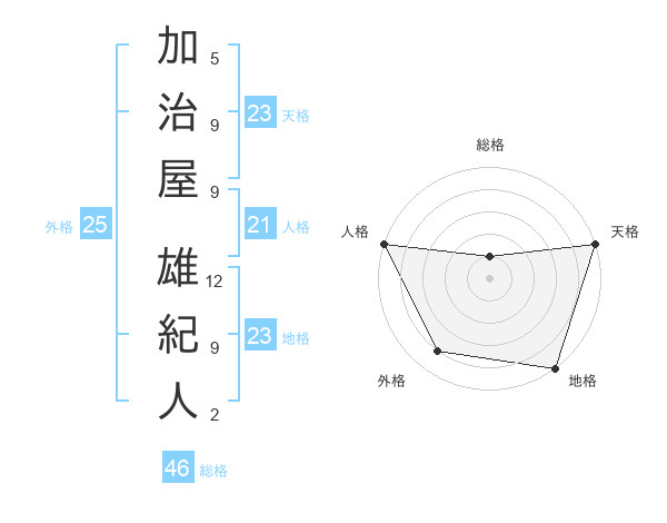 加治屋 雄紀人さんを姓名の画数から五運を鑑定