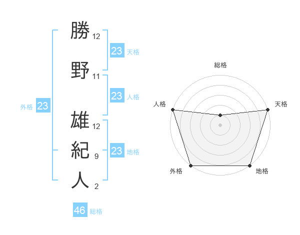 勝野 雄紀人さんの外格は23画の5点!
