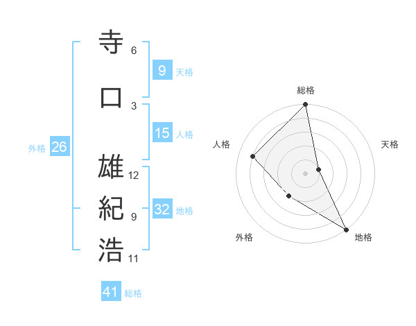 寺口 雄紀浩さんの地格は32画の5点!