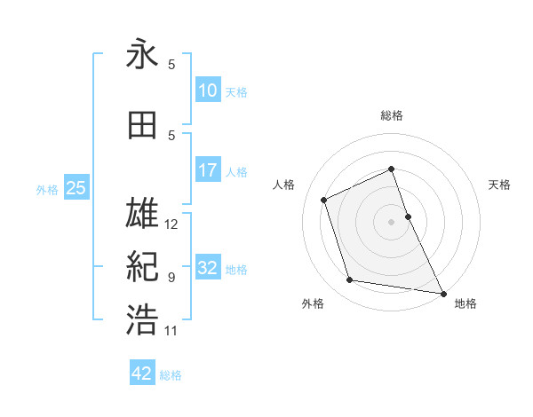 永田 雄紀浩さんを姓名の画数から五運を鑑定