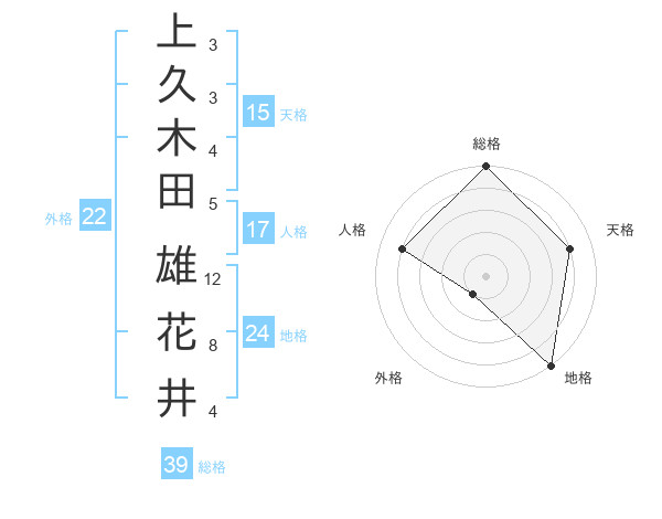 上久木田 雄花井さんを姓名の画数から五運を鑑定