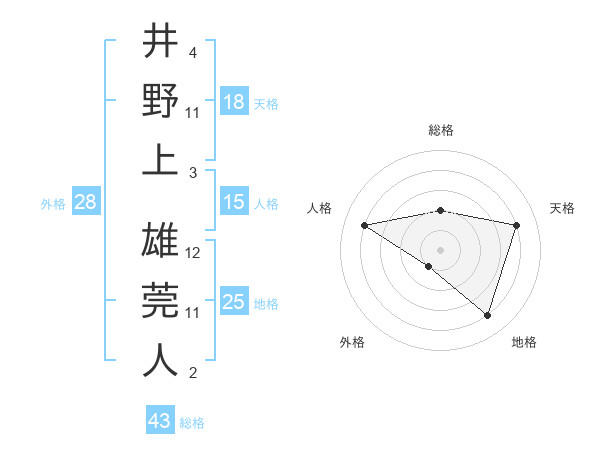 井野上 雄莞人さんを姓名の画数から五運を鑑定