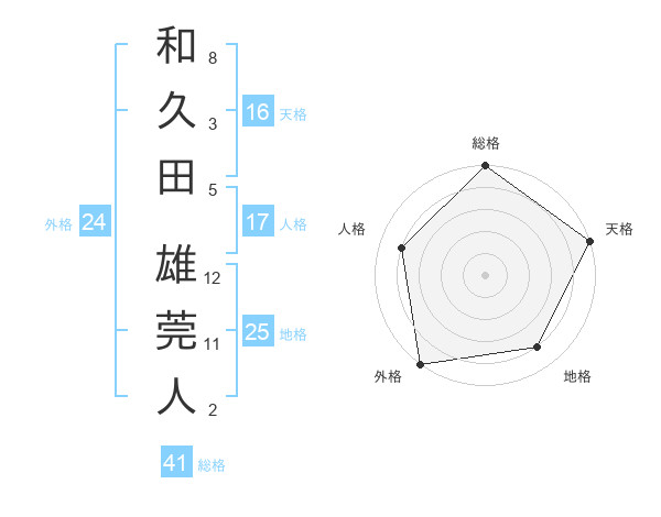 和久田 雄莞人さんを姓名の画数から五運を鑑定