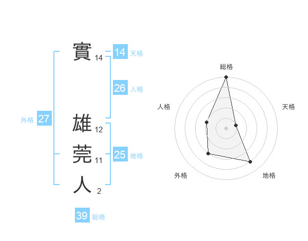 實 雄莞人さんの外格は27画の3点!