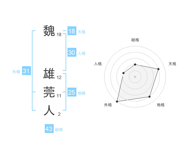 魏 雄莞人さんを姓名の画数から五運を鑑定