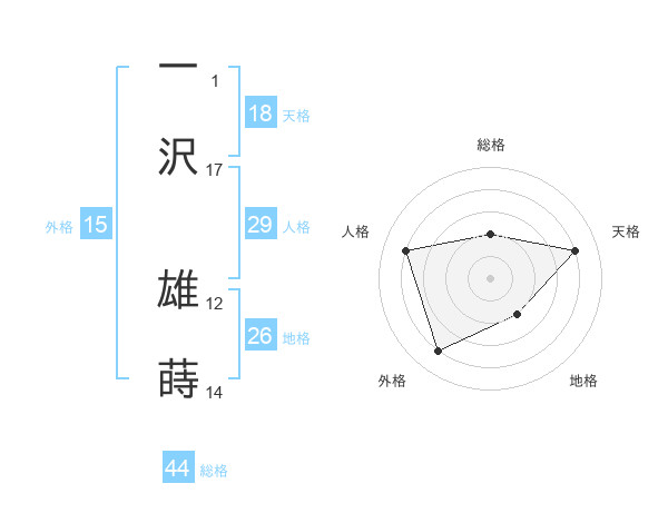 一沢 雄蒔さんを姓名の画数から五運を鑑定