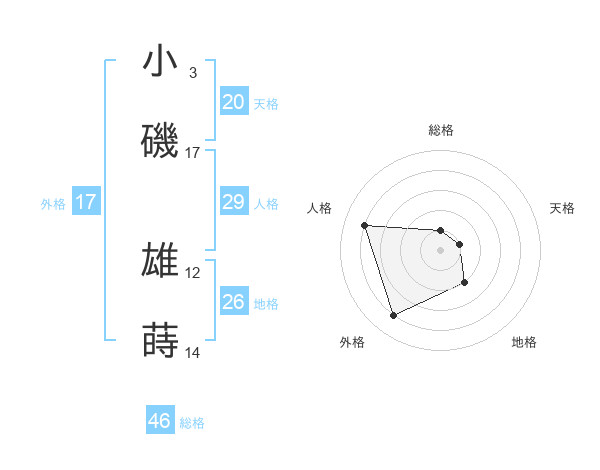 小磯 雄蒔さんの天格は20画の1点!